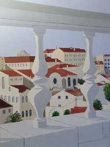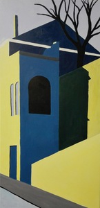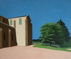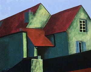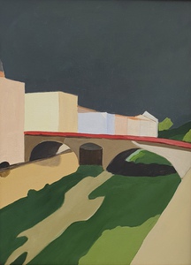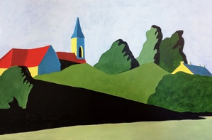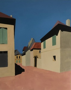 2016In de Morvan begonnen met schilderen in kleuren en vlakken. Dit is Vézelay. Acryl op karton.