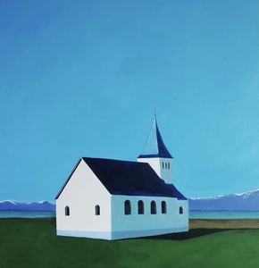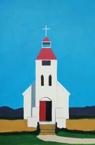 2020De scherpe lijnen en heldere kleuren van het kerkje passen precies in mijn straatje...