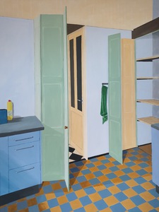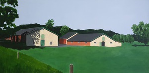 2018Boerderijtje in blauw, in de Morvan, acryl op karton, ingelijst