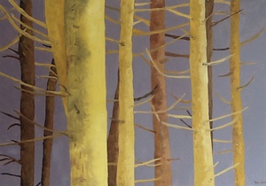 2016Stammen in een dennenbos hebben een fris kleurtje gekregen...