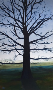 2016In de tuin van het huis waar we vakantie vierde, een enorme lindeboom. In de Morvan, Vitry Laché. Acryl op karton, ingelijst.